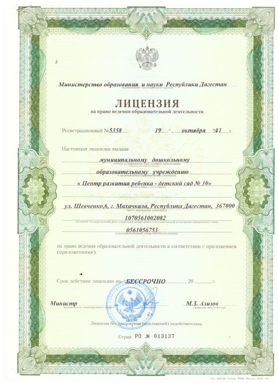 | Полное наименование образовательной организации* | Муниципальное бюджетное дошкольное образовательное учреждение Центр развития ребенка"Детский сад № 30" |
